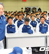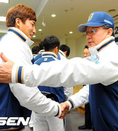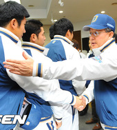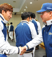 2012.01.11 10: 55선수단과 인사 나누는 김경문 감독,'내년에는 꼭 1군 올라가자!'