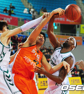 2012.01.13 19: 36김주성-주태수-벤슨,'치열한 리바운드 대결'