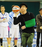 2012.01.15 13: 57리키김,'부상투혼! 한 손으로 하프라인슛 도전!'