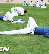 강도 높은 훈련에 녹초가 되어버린 NC선수들