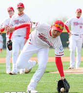 2012.01.24 15: 19김시진 감독,'하체 운동은 밴드를 사용해서'
