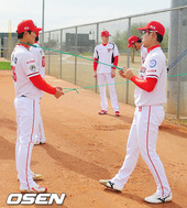 2012.01.24 16: 07유동훈-한기주,'오늘의 훈련 일정은?'