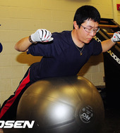2012.01.28 15: 42양현종,'볼 위에서 균형잡기'