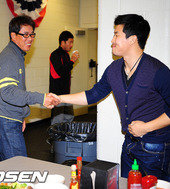 2012.01.28 10: 54저녁 먹던 김병현, 김시진 감독을 만나 악수