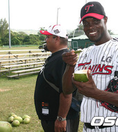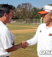 2012.01.28 22: 14양승호,'조 코치, 얼굴이 많이 탓네!'