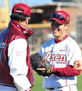 2012.01.31 07: 27김병현,'감독님의 농담에 얼굴가리고 미소'