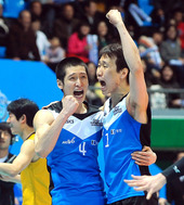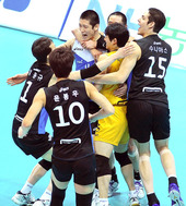 2012.02.09 20: 35환호하는 문성민-임동규,'13연승 대한항공 꺾었다!'