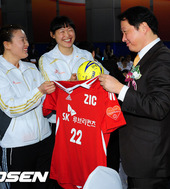 2012.02.10 13: 39최태원 회장,'유니폼과 사인볼을 받으며'