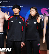 2012.02.14 10: 38최규웅-정다래,'런던올림픽 수영 국가대표팀 수영복 공개'