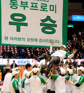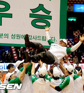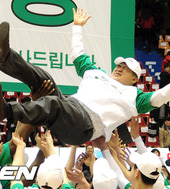 2012.02.14 21: 05헹가래 받는 강동희 감독,'최소경기 우승!'