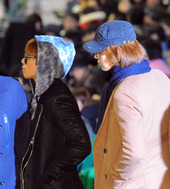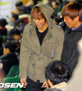 2012.02.18 18: 53모자눌러 쓴 샤이니 종현-민호,'카라콘서트 왔어요'