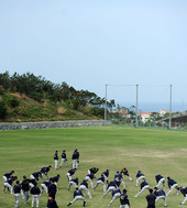 2012.02.21 20: 01스트레칭하는 오릭스 선수단