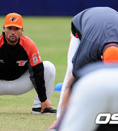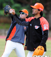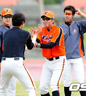 2012.02.22 11: 39박찬호, '어랏, 나만 동작이 다르네'