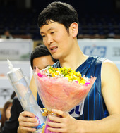 2012.02.26 17: 21추승균,'1만점 달성 축하 꽃다발을 들고'
