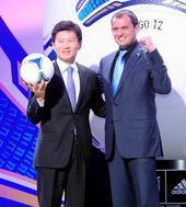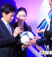 2012.02.28 11: 34K리그 공인구 '탱고12'에 사인하는 정몽규 총재