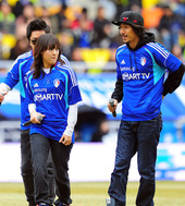 2012.03.04 16: 08힙합부부 윤미래-타이거JK,'축구장 접수하러 왔어요!'
