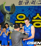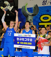 2012.03.07 21: 32가빈,'팀 대표로 정규리그 우승트로피를 받으며'