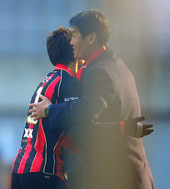 2012.03.10 16: 42몰리나-최용수 감독,'축하 폭죽 연기 속 뜨거운 포옹!'