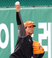 2012.03.16 13: 28박찬호,'강렬한 눈빛으로 투구연습'