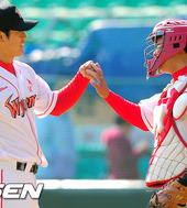 2012.03.20 15: 46박희수-최경철,'삼성 강타선 깔끔하게 막았어'