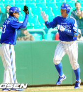 2012.03.20 14: 18채태인-최형우-박석민,'충성! 상병님! 솔로포 축하합니다'
