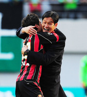 2012.03.25 17: 11최용수 감독,'전북 꺾은 몰리나와 뜨거운 포옹!'