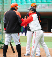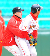 2012.03.27 12: 13조 알바레즈 코치,'최정에게 백허그(?)'