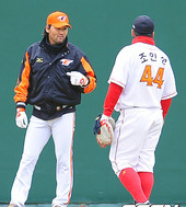 2012.03.27 12: 09박찬호,'SK 조 알바레즈 코치에게 반갑게 인사'
