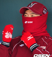 2012.03.27 11: 37넥워머로 얼굴 감싼 김병현, '아직도 겨울'