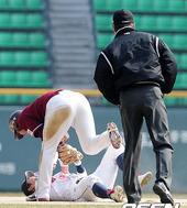 2012.03.28 14: 50박병호-최주환, '누가 보면 씨름하는 줄 알겠네'