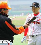 2012.03.28 11: 43박진만,'한대화 감독님! 제 배트가 마음에 드세요?'