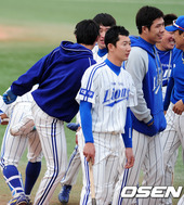 2012.03.29 16: 54배영수, '끝내기 박석민을 향한 애정의 발길질'