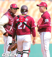 2012.03.29 13: 53고개 숙인 문성현,'밀어내기 볼넷만 두개야'