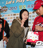 2012.04.03 14: 41정근우,'승엽이형 사인은 이렇게 하는거야~'
