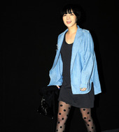 2012.04.03 11: 07에이미,'도트 스타킹에 데님 자켓으로 매치'