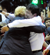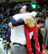 2012.04.06 21: 29인삼공사,'감독님 꼭 끌어안고'