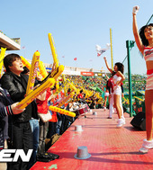 2012.04.07 16: 32치어리더와 함께 열띤 응원을 펼치는 KIA 팬들!