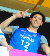 2012.04.11 21: 09이승준,'삼성화재 응원하며 귀엽게 브이'