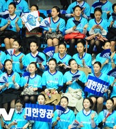 2012.04.12 19: 44열띤 응원을 펼치는 대한항공 여승무원들
