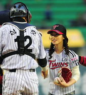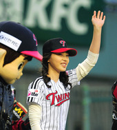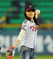 2012.04.12 18: 38당구 얼짱 차유람,'시구 하러 잠실왔어요'