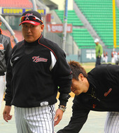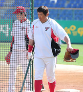 2012.04.12 16: 45강민호,'김기태 감독님 허벅지 선수 못지 않네요'