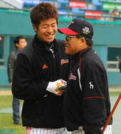 2012.04.12 16: 49홍성흔,'김무관 코치님! 반가워요'