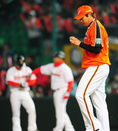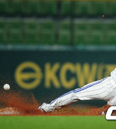 2012.04.13 20: 352루 도루 이승엽, '손으로 목 부여잡고'