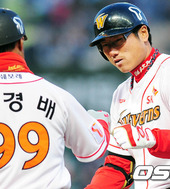 2012.04.14 19: 06박정권,'정경배 코치와 하이파이브'