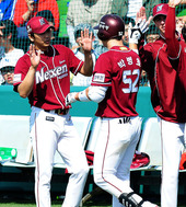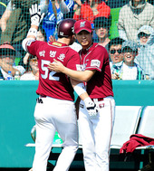 2012.04.15 15: 24김병현, '솔로포 강정호 머리 가볍게 톡'