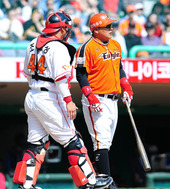 2012.04.15 15: 15김태균,'어디로 던져!'