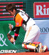 2012.04.15 15: 25파울 타구 놓친 강민호,'그물에 의지하며'