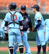 2012.04.15 11: 10'마운드 내려가는 휘문고 조기현'