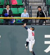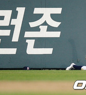 2012.04.18 19: 04김현수, '홈런성 타구 잡아내고 펜스에 충돌'