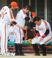 2012.04.18 19: 07박찬호,'태균아! 하이파이브 안해줄거니?'